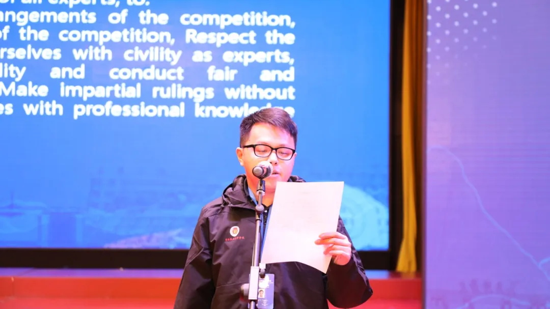 裁判员代表中国澳门卢德诚、选手代表中国樊孟强分别宣誓后,张电达宣布世界技能大赛国际邀请赛暨高技能人才交流活动开幕!