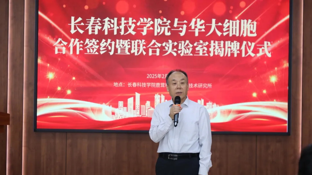 2月25日,长春科技学院与华大细胞战略合作签约暨联合实验室揭牌仪式在长科鹿茸所举行。华大细胞CEO顾颖,吉林省长春市政协副主席薛文革,长春科技学院副校长、吉林省东鳌鹿业集团董事长王艳梅等双方高层领导、长春市相关政府部门负责人、企业代表及学术界同仁齐聚一堂,共同见证这一产学研深度融合的重要时刻。双方将依托各自科研与产业优势,在鹿茸干细胞基础研究、技术开发及成果转化等领域展开深度合作,推动鹿茸产业迈向生物科技新高度,标志着鹿茸产业与基因细胞技术的深度融合,将为吉林省生物医药产业发展注入新动能。长科鹿茸所所长李春义主持仪式。