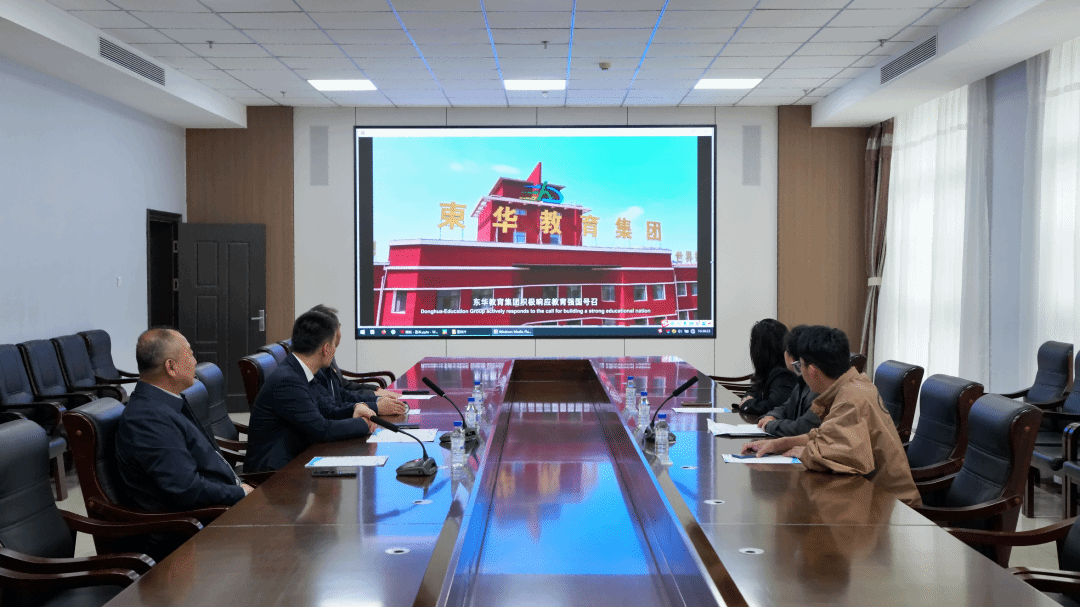 在行政楼403会议室召开的人才共育座谈会上,与会人员共同观看东华教育集团、长春科技学院宣传片,全方位了解学校的发展历程、办学特色与人才培养优势,为后续合作奠定了坚实的基础。